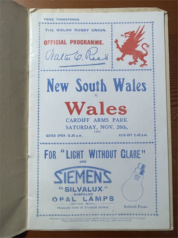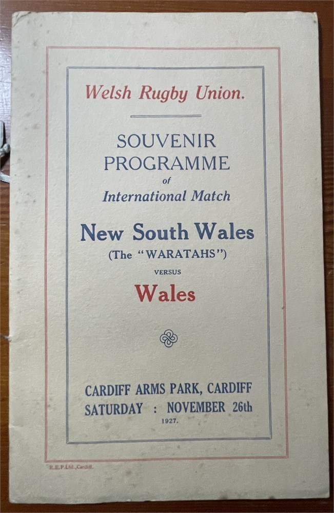 Rugby Union - Test Program Wales v NSW - Cardiff 26 Nov 1927