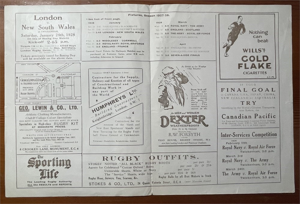 Rugby Union - Test Program Eng v NSW - London 7 Jan 1928