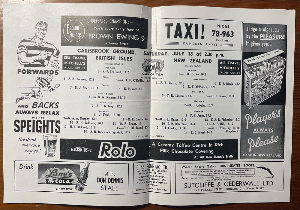 Rugby Union - Test program - NZ v British Is 1T 1959