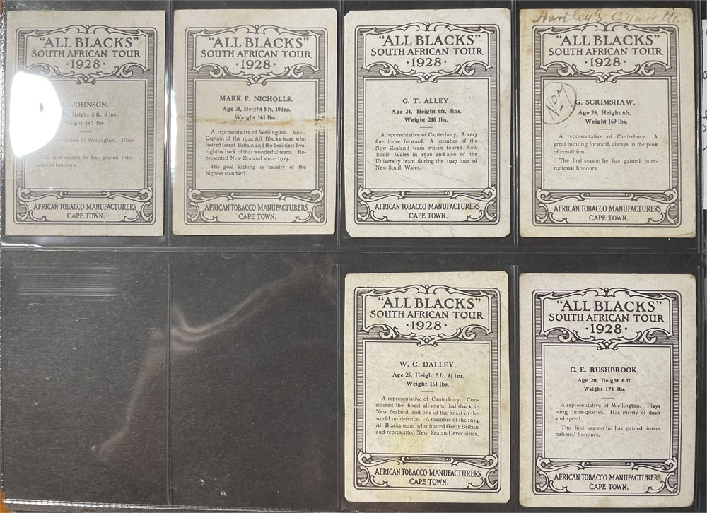 1928. Unnumbered set of 29. African Tobacco Manufacturers Cape Town. He have six cards (6) - Johnson, Nicholls, Alley, Scrimshaw, Dalley, Rushbrook. In poor to Good condition. Each auction will remain OPEN for 5 minutes after the last bid has been made.