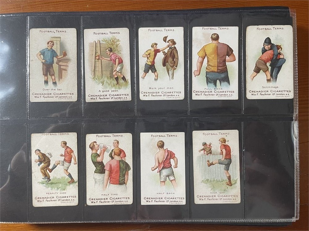 1895. Grenadier Cigs W&F Faulkner. "Sporting terms". There were 12 football cards is the 1st series and 12 in the 2nd. Some rugby and some football and some either code. Unnumbered and blank on verso. Each auction will remain OPEN for 5 minutes after the last bid has been made.