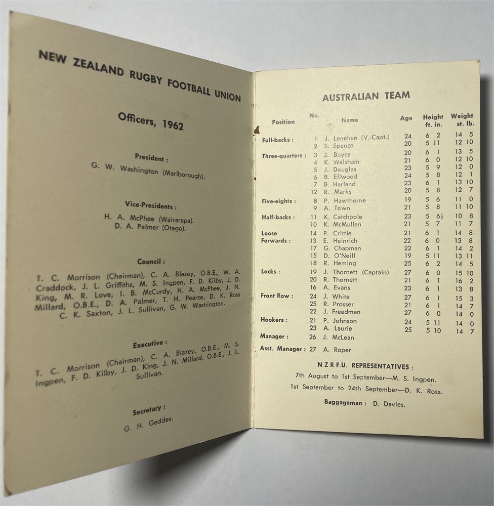 A 4 page itinerary produced by NZRU and printed by Fleet Printers Limited. Lists NZRFU Office bearers/ Australian team/ Matches/Travel and accommodation. Each auction will remain OPEN for 5 minutes after the last bid has been made.