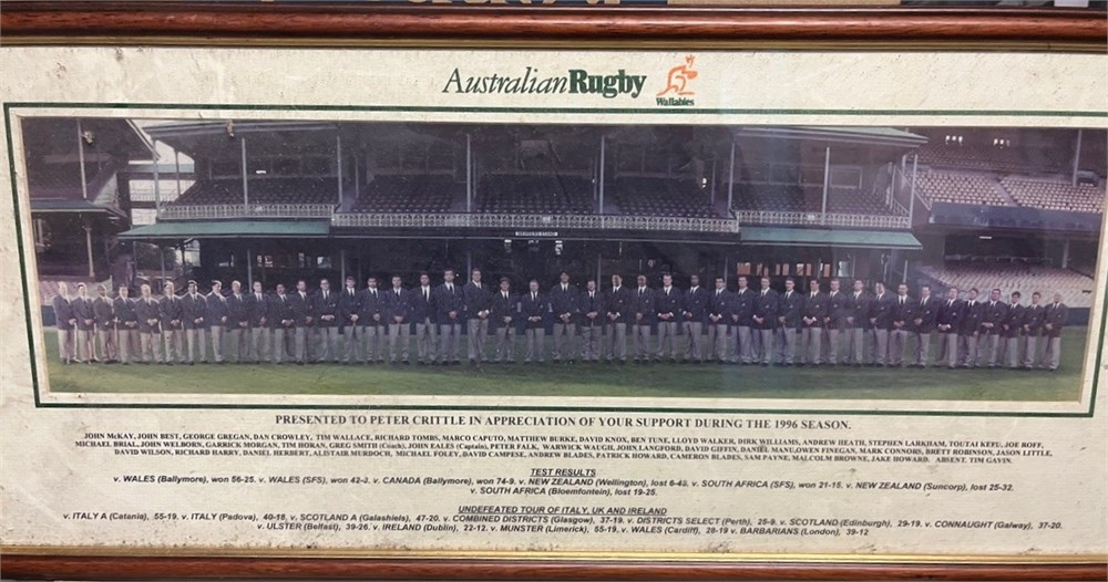 Mini panorama of 1996 touring side taken at SCG. With undefeated tour results. Presented to Peter Crittle. Each auction will remain OPEN for 5 minutes after the last bid has been made.