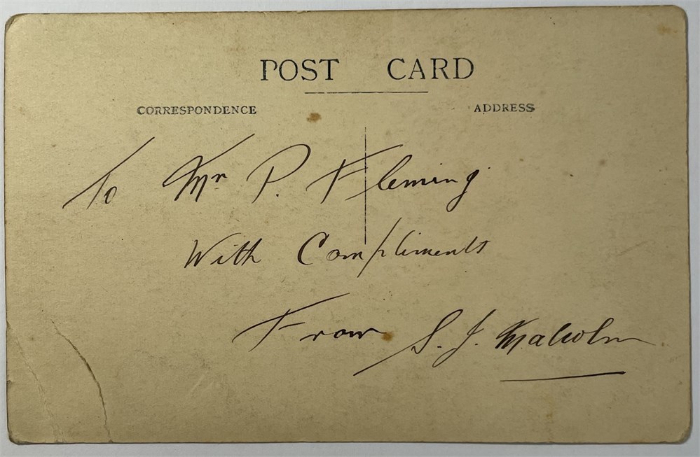 Team photo. Taken by J.E. Thomas. On verso "To Mr P Fleming with Compliments S.J. Malcolm" (Team member). Each auction will remain OPEN for 5 minutes after the last bid has been made.