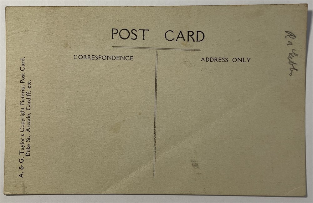 Portrait. Unused postcard. Taken by A&G Taylor, Duke St., Arcade, Cardiff. In Welsh jersey. Regie played 16 tests 1906-1911. He was a member of the 1908 Anglo-Welsh team and played 2 tests. Each auction will remain OPEN for 5 minutes after the last bid has been made.
