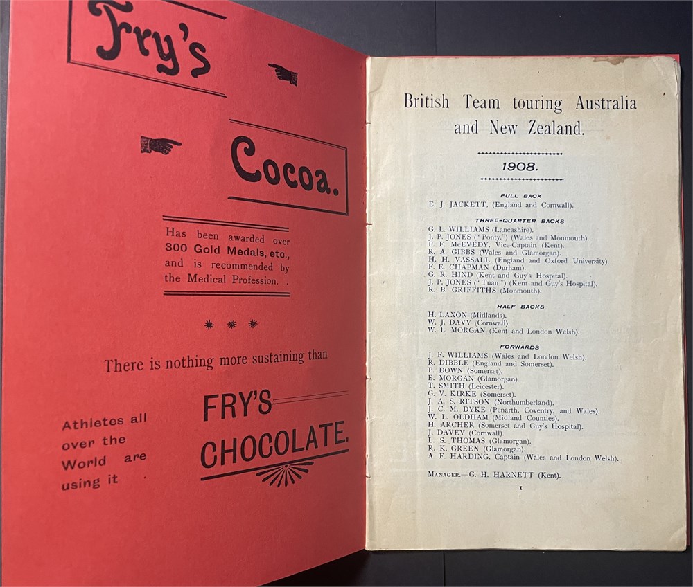 Cover is a reprint. Contents original "Souvenir and Official Programme of the British Rugby Football Team In New Zealand". Ferguson and Hicks Ltd., Wellington. 32 pages. Each auction will remain OPEN for 5 minutes after the last bid has been made.