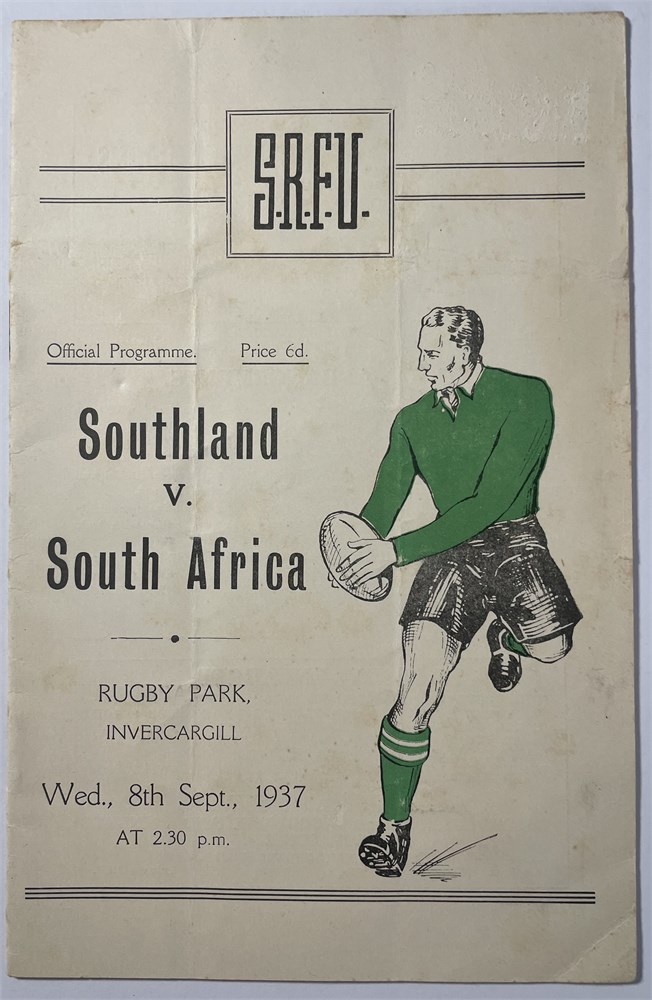 Rugby Park, Invercargill 8th Sept 1937. Cover has 2 creases, In Good condition. Each auction will remain OPEN for 5 minutes after the last bid has been made.