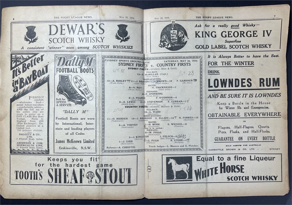 The RL News Vol. 15. No. 7. Sydney Sports ground May 26th. Score and scorers noted in pencil on team page. Creased. In Poor to Good. Each auction will remain OPEN for 5 minutes after the last bid has been made.