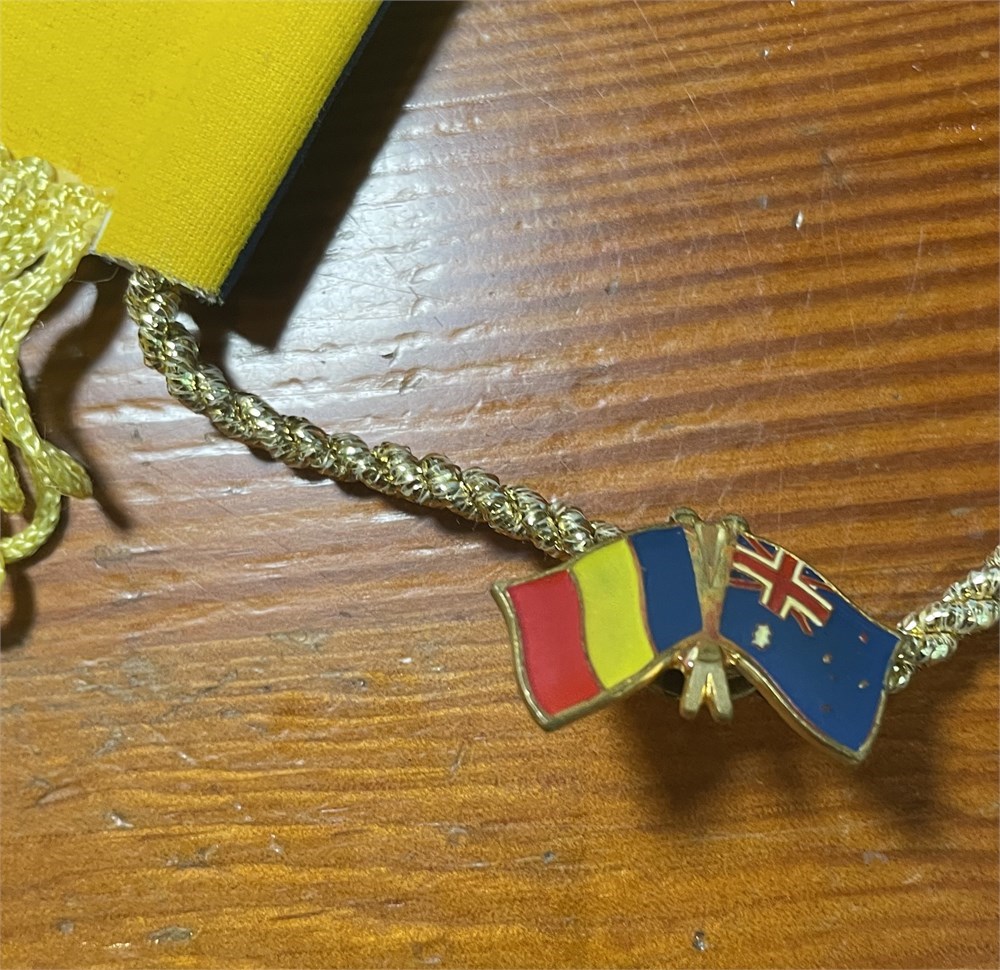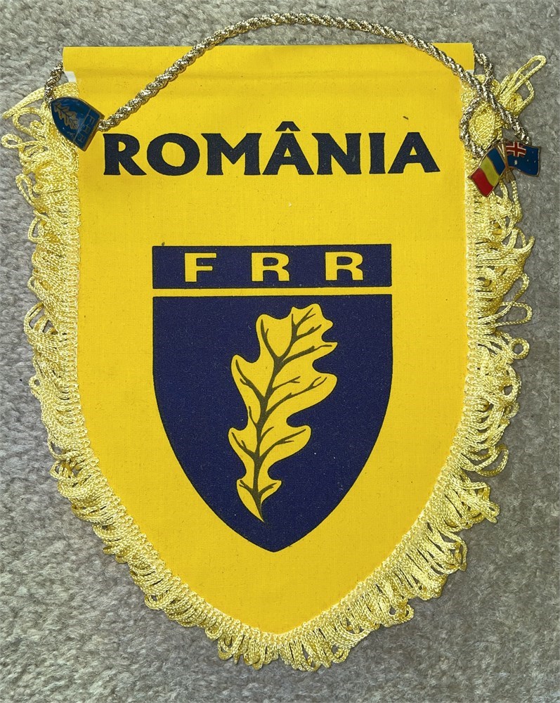 Romania FRR with two enamel badges Romanian Rugby FRR and a dual Romania/Australian flag. Possibly from 1995 RWC match. Each auction will remain OPEN for 5 minutes after the last bid has been made.
