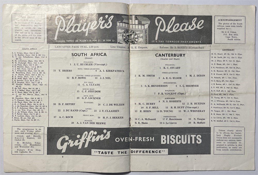 Lancaster Park, Christchurch. Multiple creases and tape to spine. Poor.