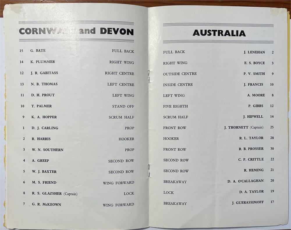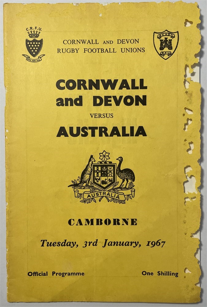 Rugby Union-Tour prog. 1967 Cornwall & Devon v Aust