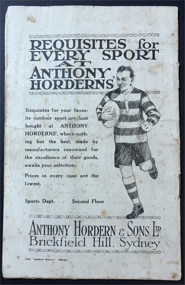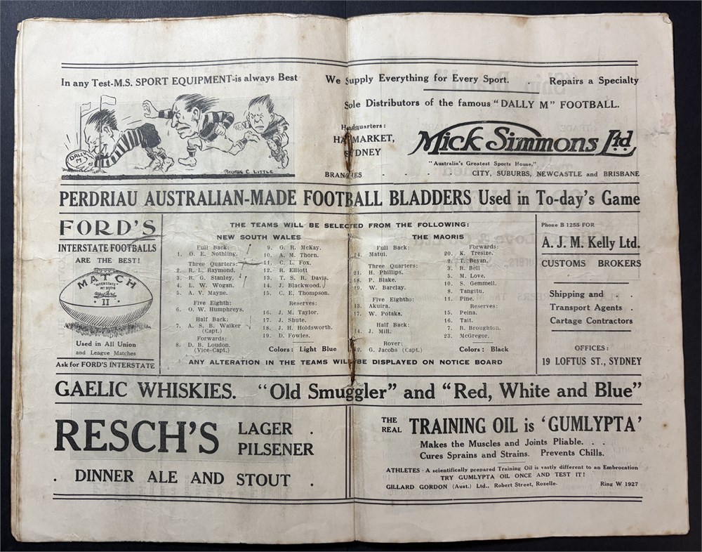 Rugby Union - Test prog. 1922 NSW v Maori 1922