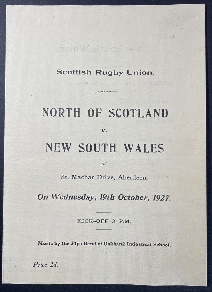 1Wed 19th Oct, 1927 St Machar Drive, Aberdeen. Heavy aper single fold. Has a crease and has been cut at bottom. NSW Team change noted in pencil. In Poor condition.