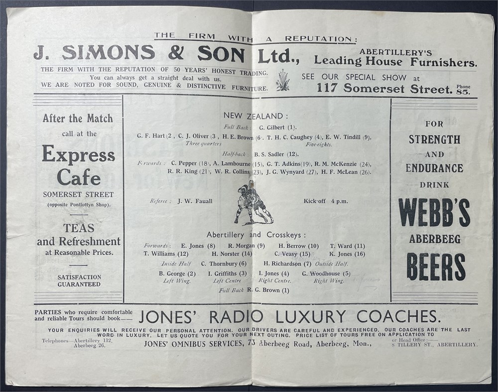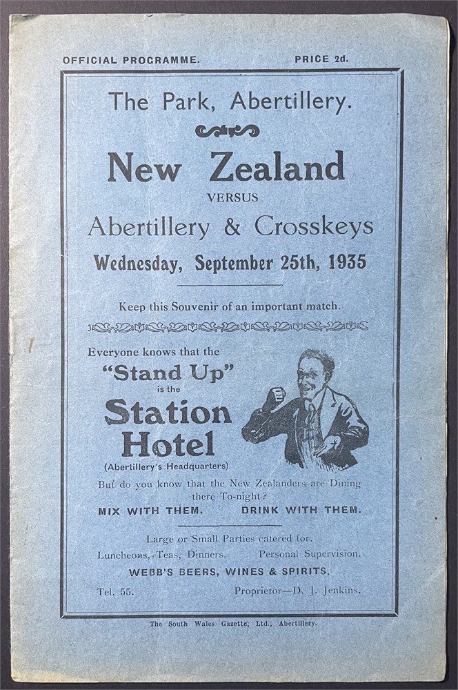 Wed. Sept 25th. 1935. The Park, Abertillery. Single crease. Staples rusted, Team sheet loose. Cover sl discolour. G.