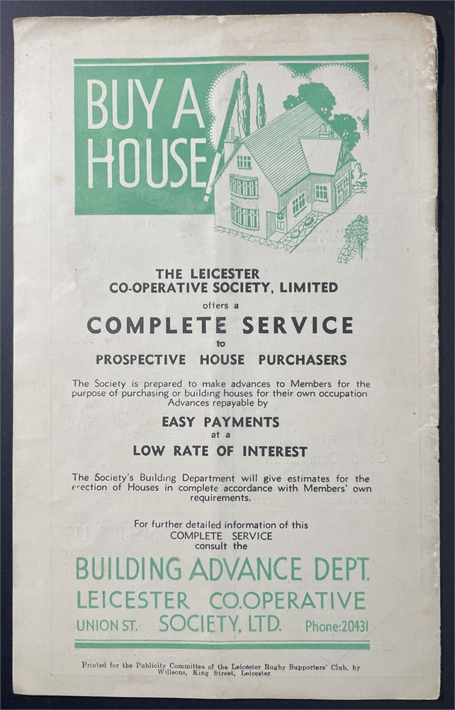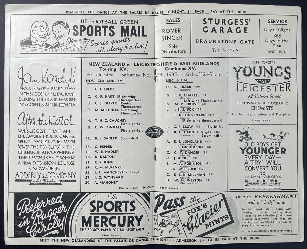 Sat 6th Nov, 1935 Leicester. Single crease, staples rusted but in VG condition.