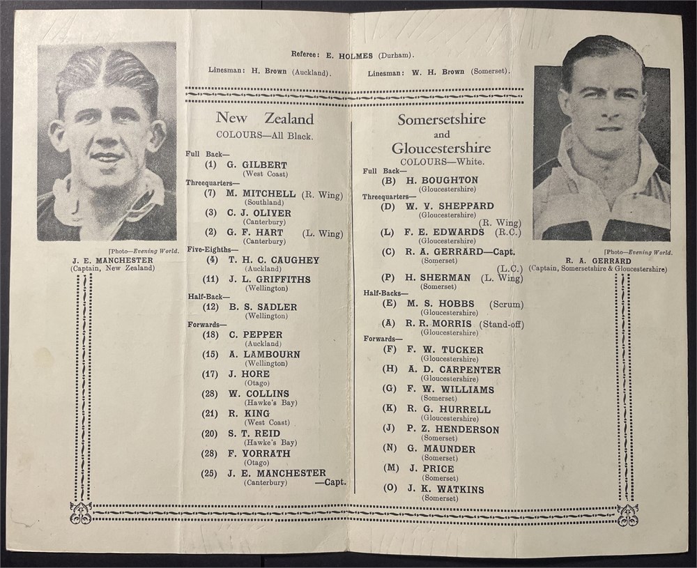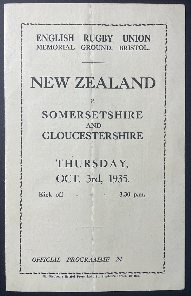 Thur Oct 3rd, 1935, Bristol. Single card with one fold. Has been creased. Can see indentations of Previous pencil marks on team sheet. G.