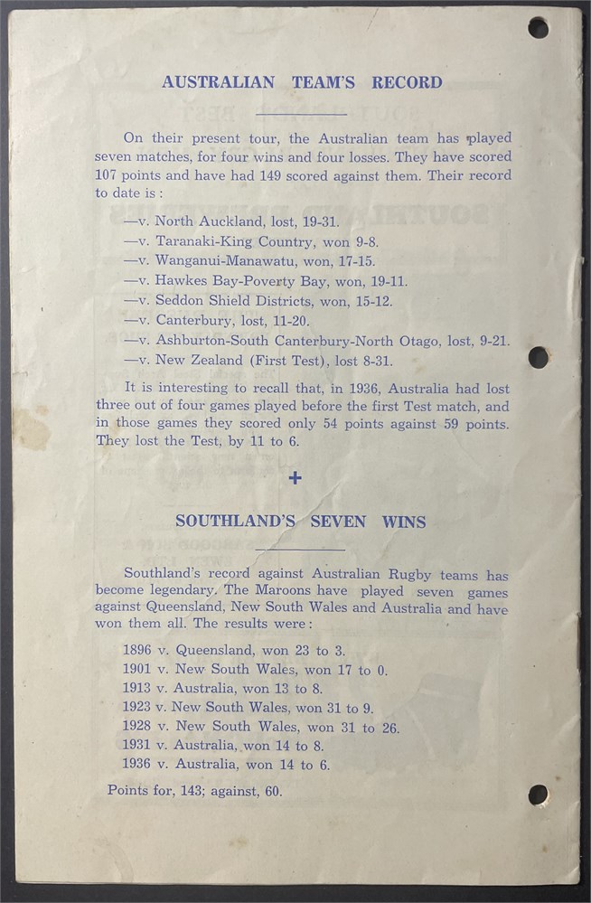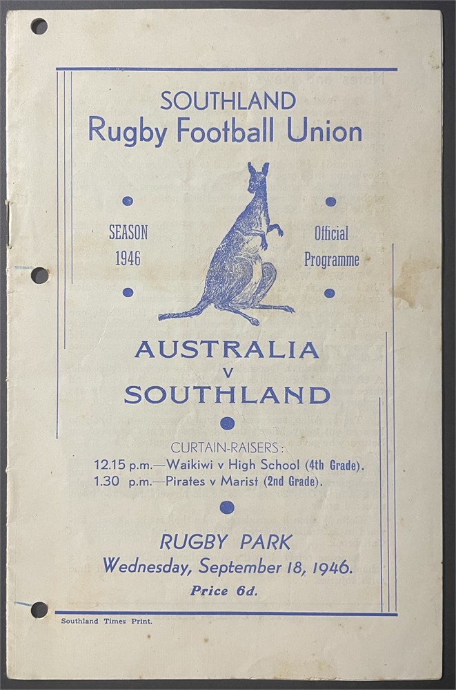Wed, September 18, 1946. Rugby Park. Marks to cover and 3 holes punched, otherwise VG.