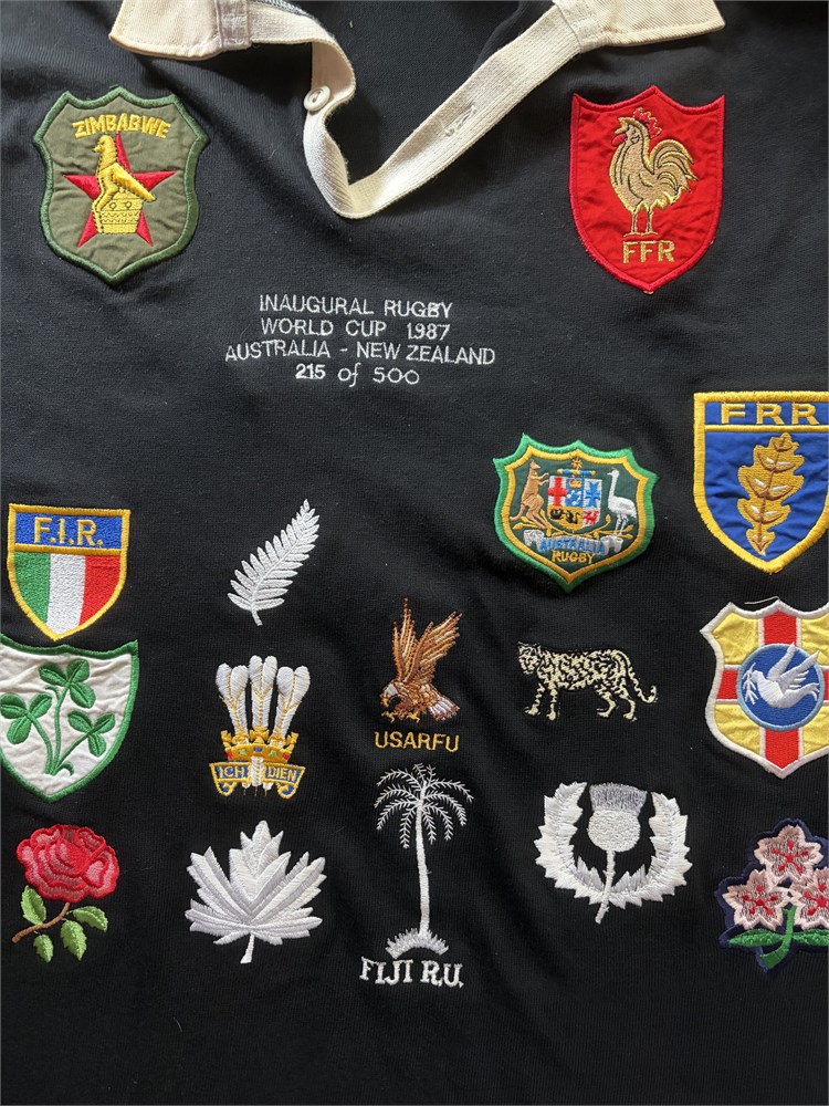 Commemorative jersey made by Canterbury. Size 42. "Inaugural Rugby World Cup 1987 Australia - New Zealand 215 of 500".