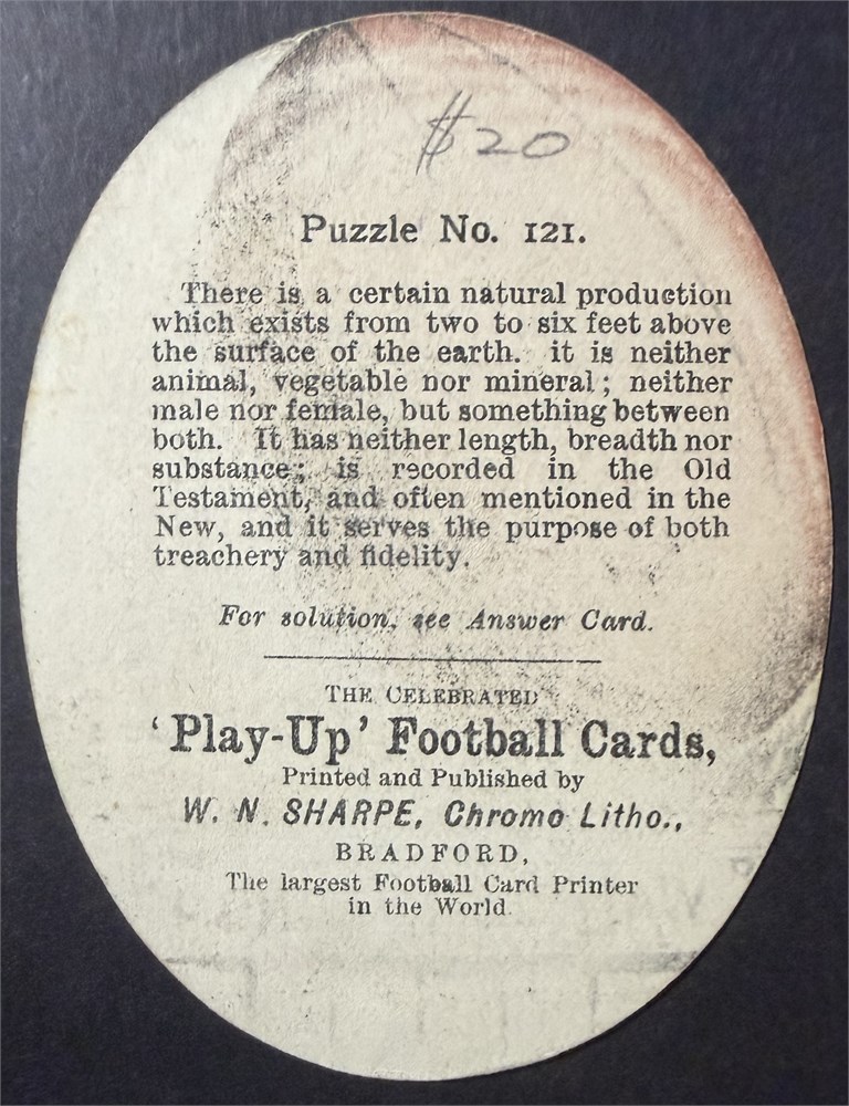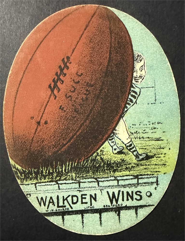 Walkden wins" On front. To rear "Play Up' Football cards Printed and published by W.N. Sharpe, Chrome Litho, Bradford.
