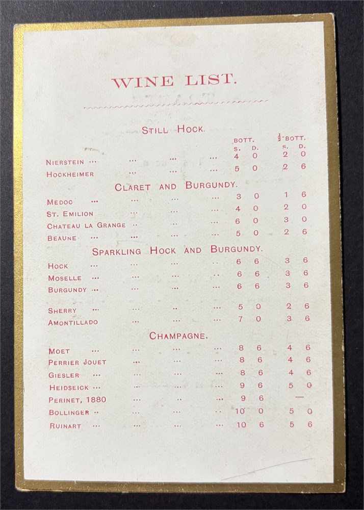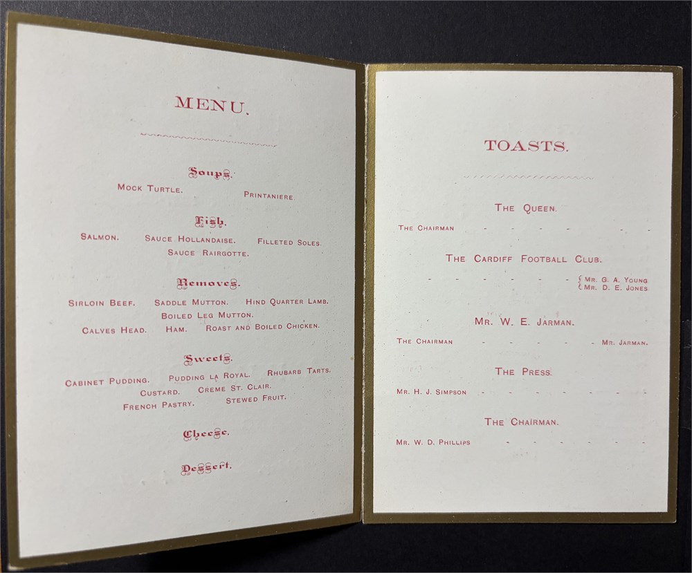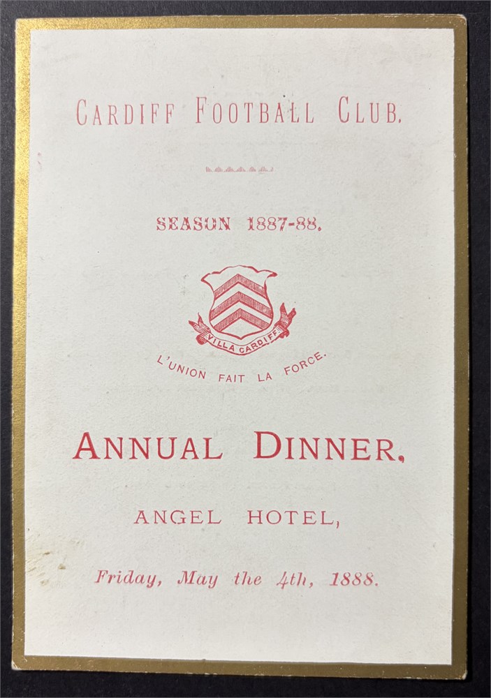 Cardiff Football Club Annual dinner 4th May 1888. Menu, Toasts and wine list.