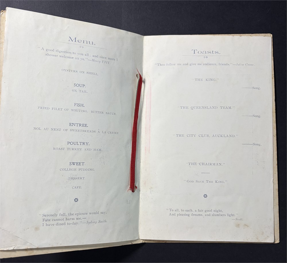 A significant piece of RU/RL history. Many influential figures in the formation of RL attended the post-match dinner. Glebe played Auckland City in the curtain raiser and then NSW v QLD.