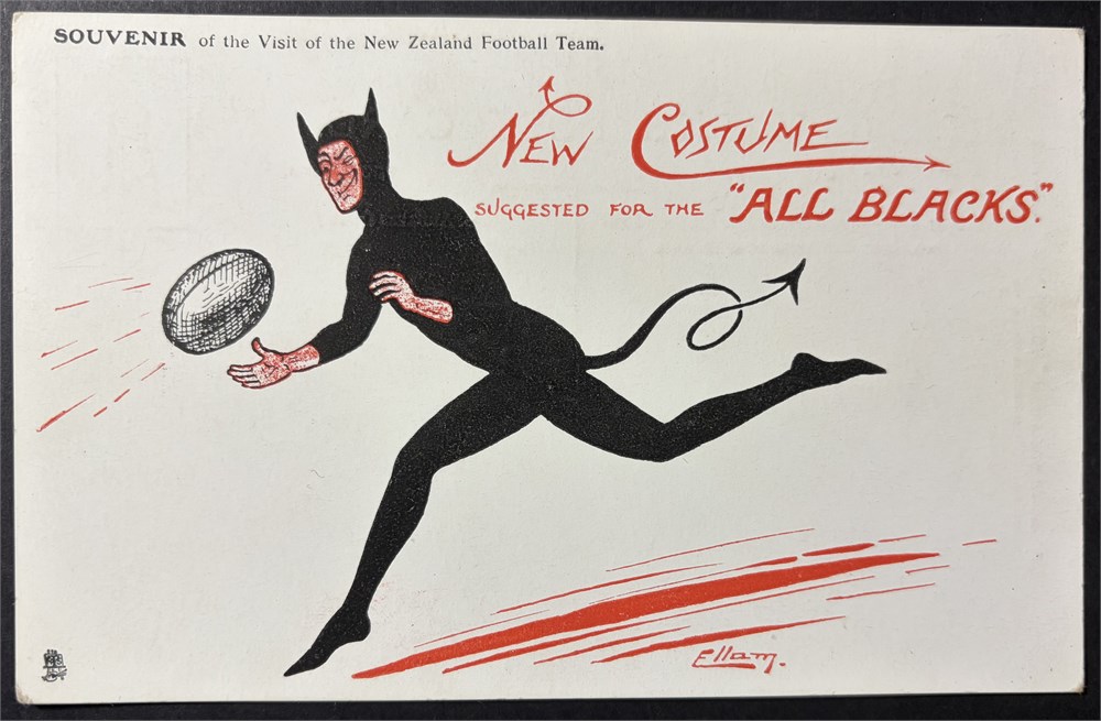 Souvenir of the visit of the New Zealand Football team. New costume suggested for the "All Blacks" Raphael Tuck & Sons. Unused in excellent condition. Each auction will remain OPEN for 5 minutes after the last bid has been made.