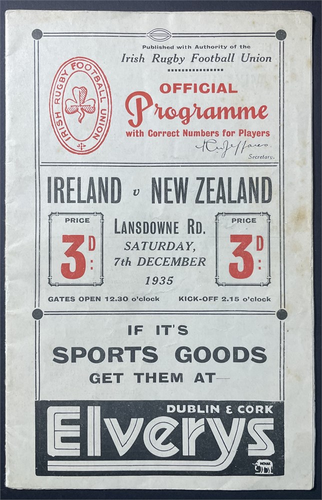 7th December, 1935. Lansdowne Road. Sl foxing to cover, in VG condition.