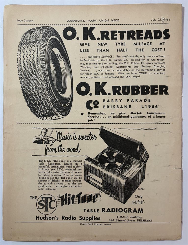 July 21, 1951, Exhibition Ground. O hole has been made through programme. There are some internal tears and a few on cover. Single crease Poor to Good.