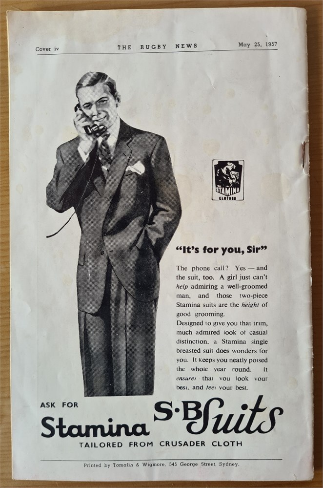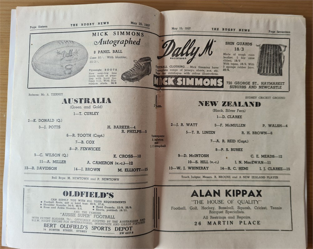 25th May 1957. SCG. Aust v All Blacks. Good condition with some slight water marks at top of programme.
