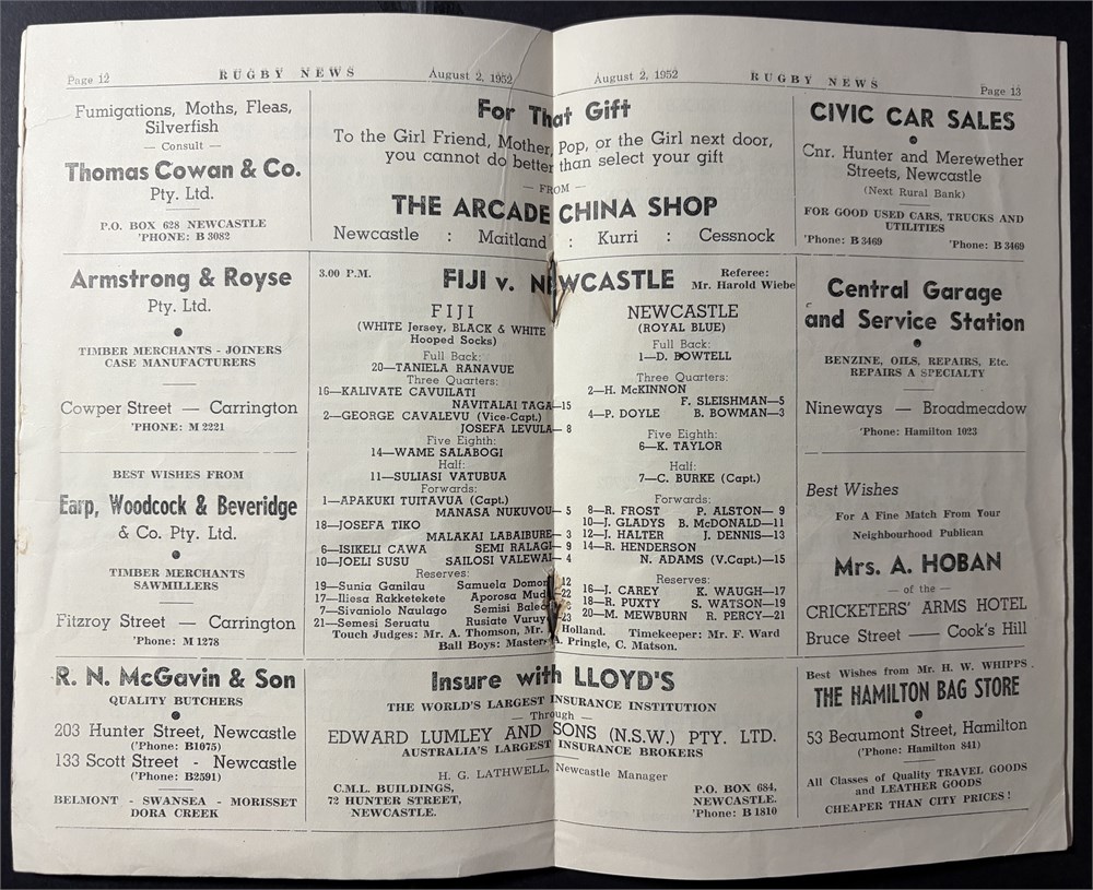 Aug 2, 1952, No1 Sports Ground Newcastle. Staples rusted and cover loose. Good.