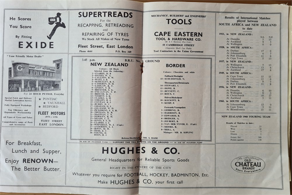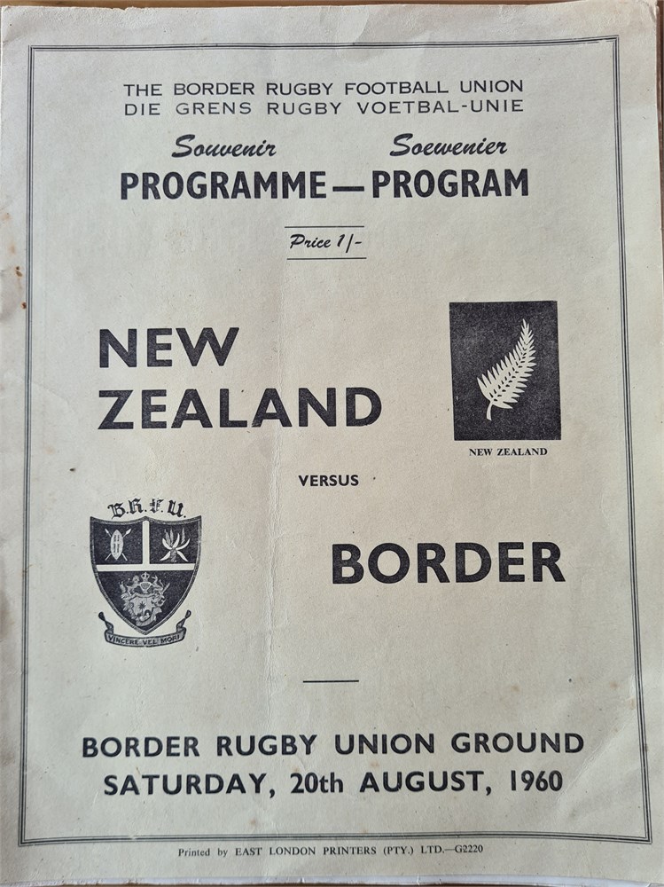1960 All Blacks vs Border (South Africa). Single crease, two rusted staples in G condition.