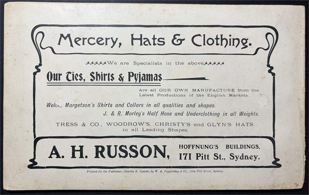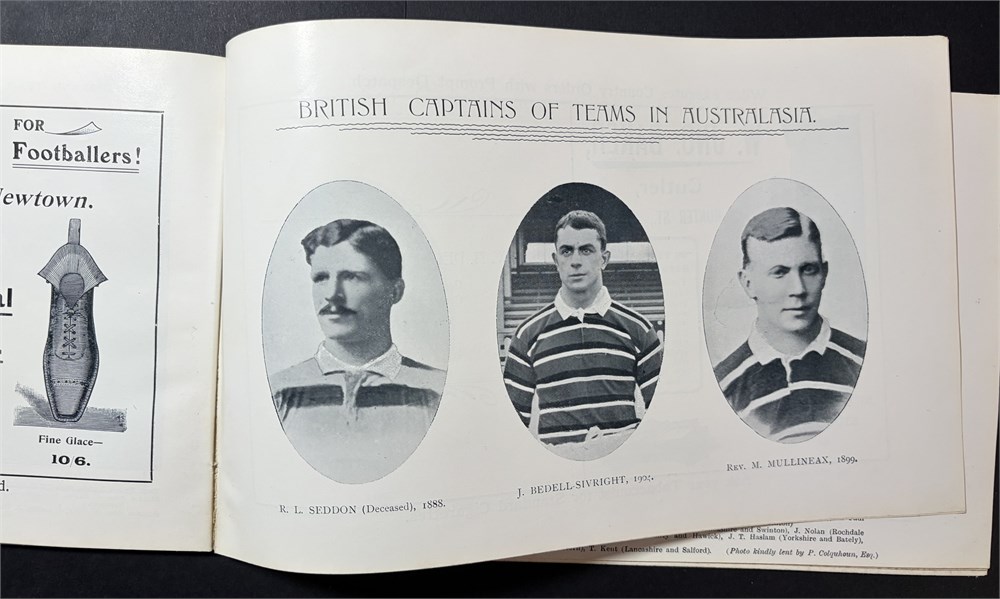 1904 BRITISH TEAM SOUVENIR. Smoke Concert Tendered to the British Footballers by the Newtown District Rugby Football Club, St Georges Hall, Newtown, Sydney, N.S.W., Thursday 28th July 1904. Charles R. Sparks, Sydney. 62pp.